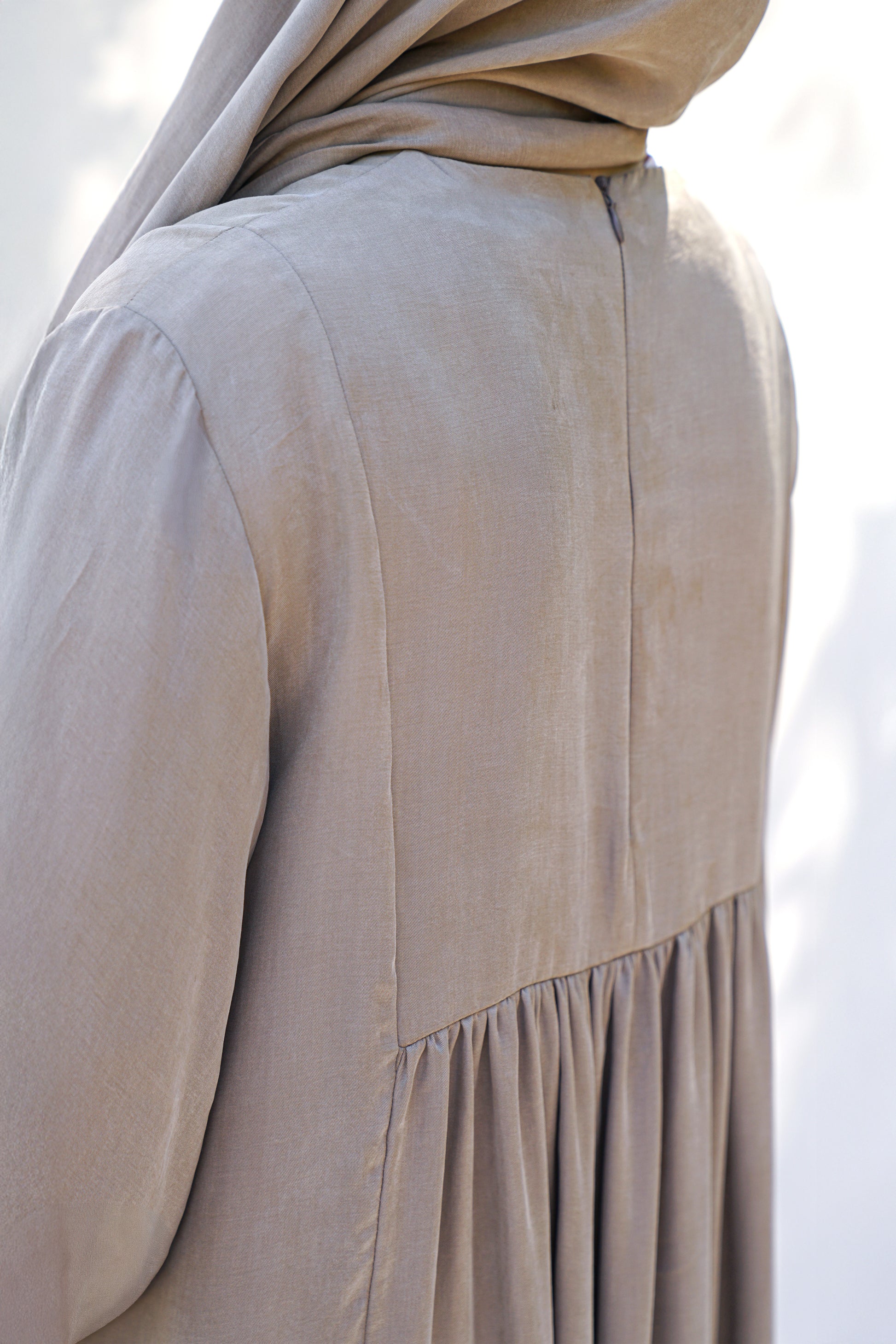 Bej Bağlama Detaylı İpek Cupro Elbise - Timeless Touch Serisi