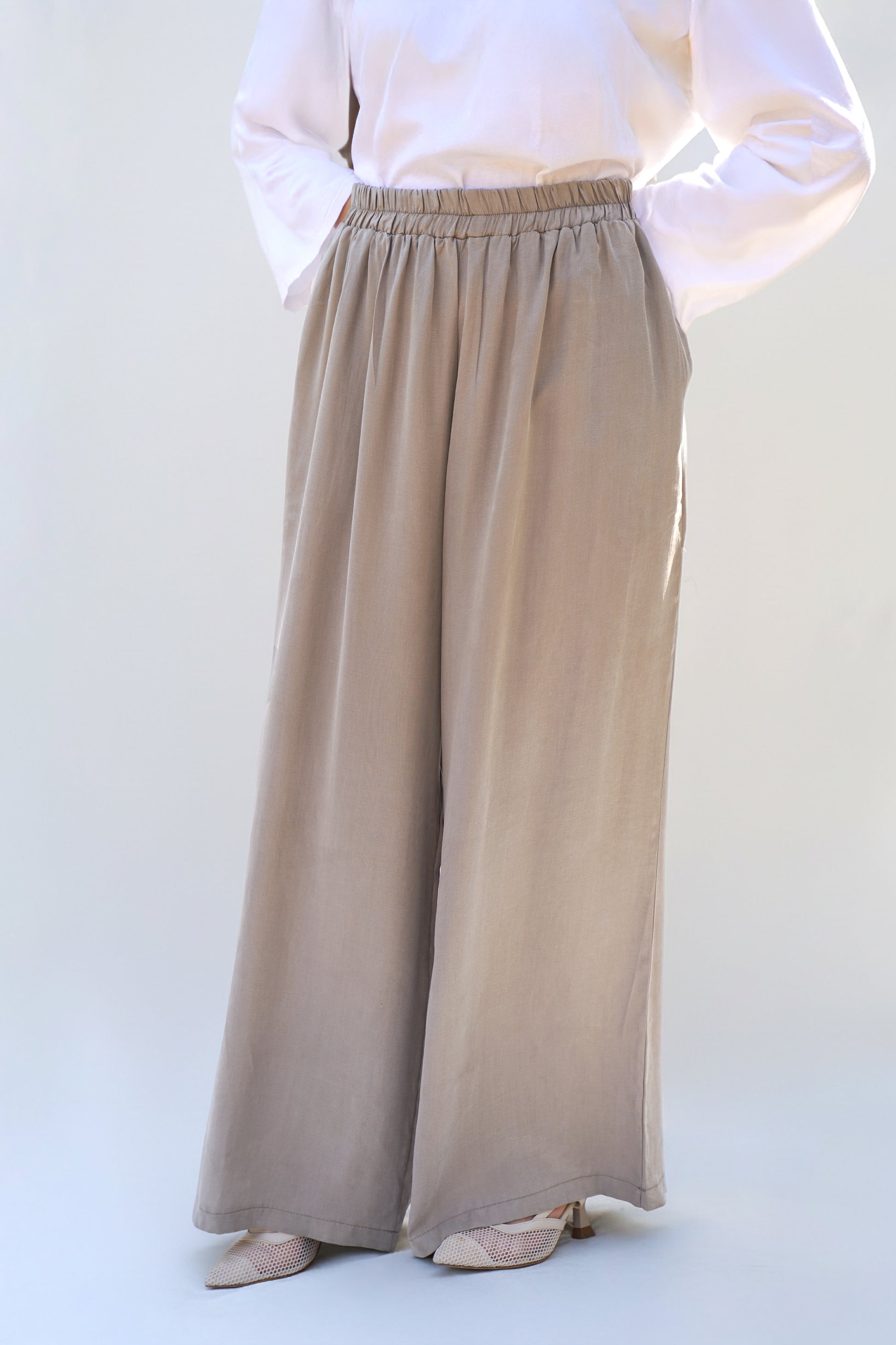 Bu pantolon, yalnızca lüks bir his değil, aynı zamanda çağdaş ve sofistike bir duruş vaat ediyor. Akışkan ve dökümlü yapısı, özellikle tesettür giyim stilini benimseyenler için ideal bir kapanma ve hareket özgürlüğü sunar. [Varsayım: Beli, rahatlığı ön planda tutan gizli lastik detaylıdır ve beli nazikçe kavrar.]