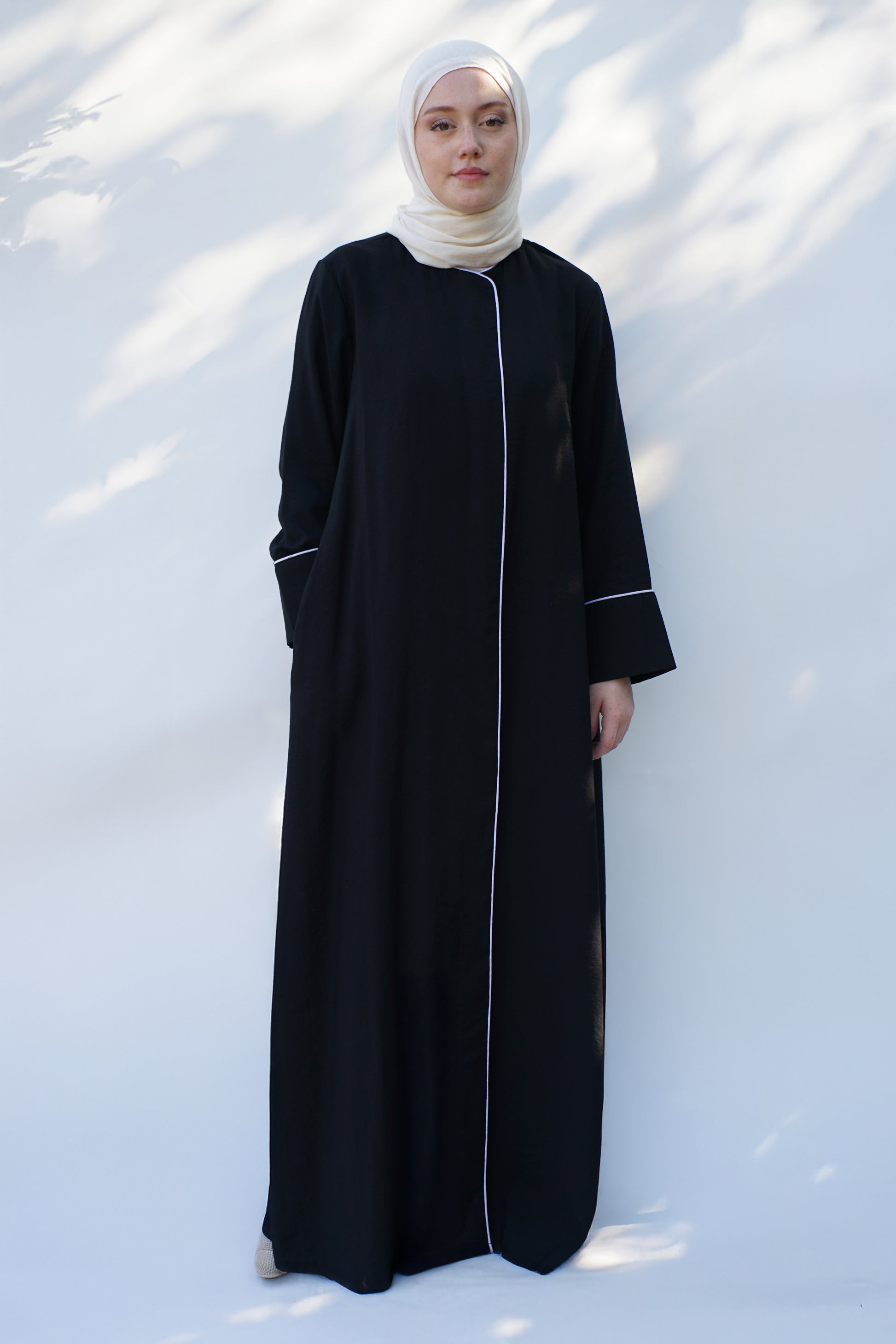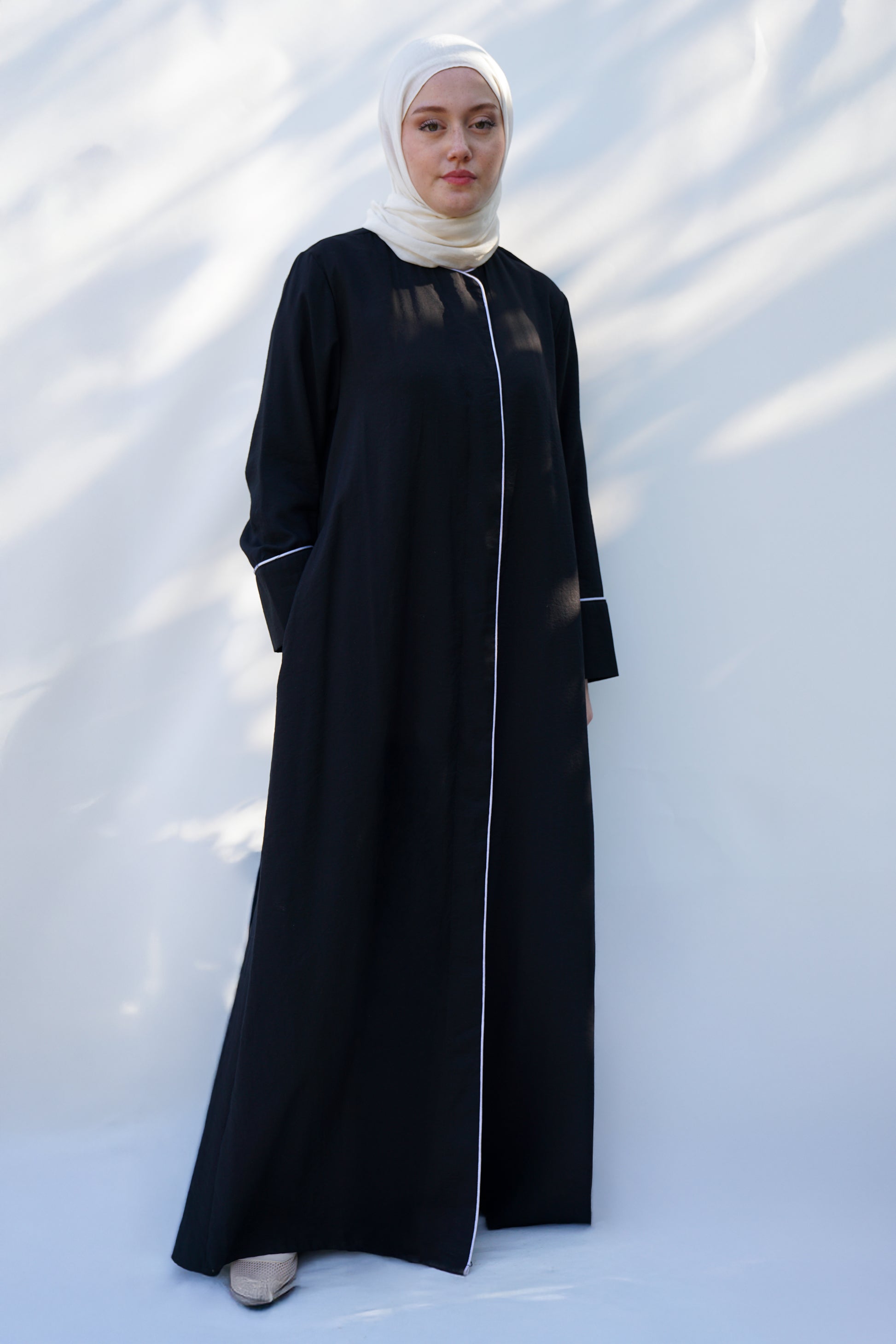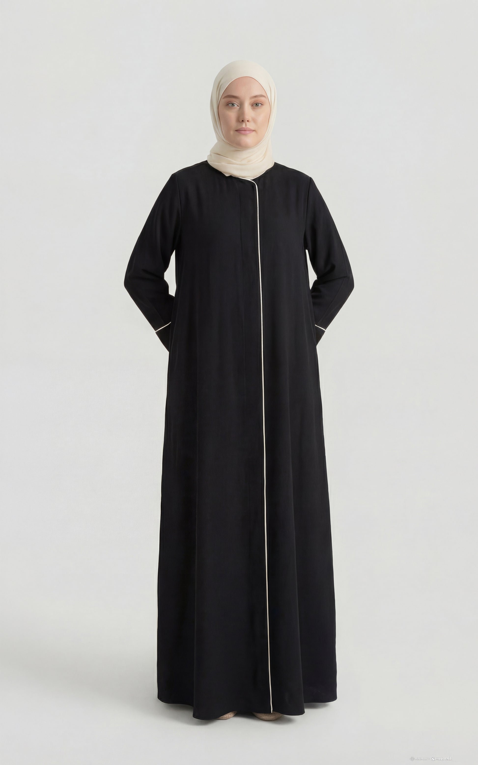 Tasarım sadeliği ve şıklığı birleştirir: Düz kesimi ile rahatlık sunan ferace, boydan gizli düğme sistemiyle bütünsel bir görünüm sergiler. Ön kısımda ve kolda yer alan ince biye detayları, ürüne sofistike ve zarif bir dokunuş ekler. Giy-çık rahatlığı sunan bu model, hem günlük kullanımda hem de özel günlerde sadeliğin içindeki tasarım zenginliğini arayan kadınlar için idealdir.