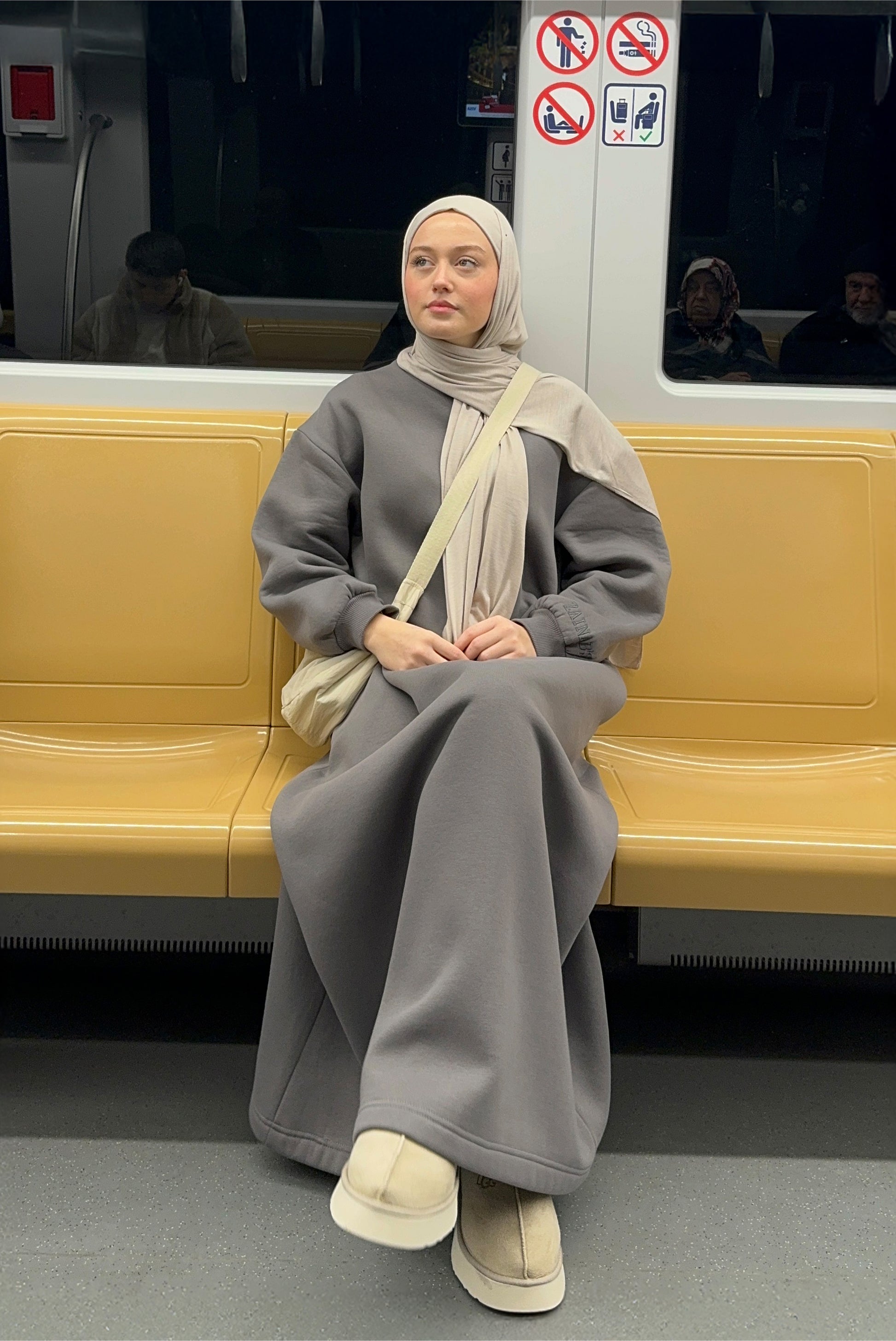 Kışlık Comfort Sweat Tesettür Elbise Gri