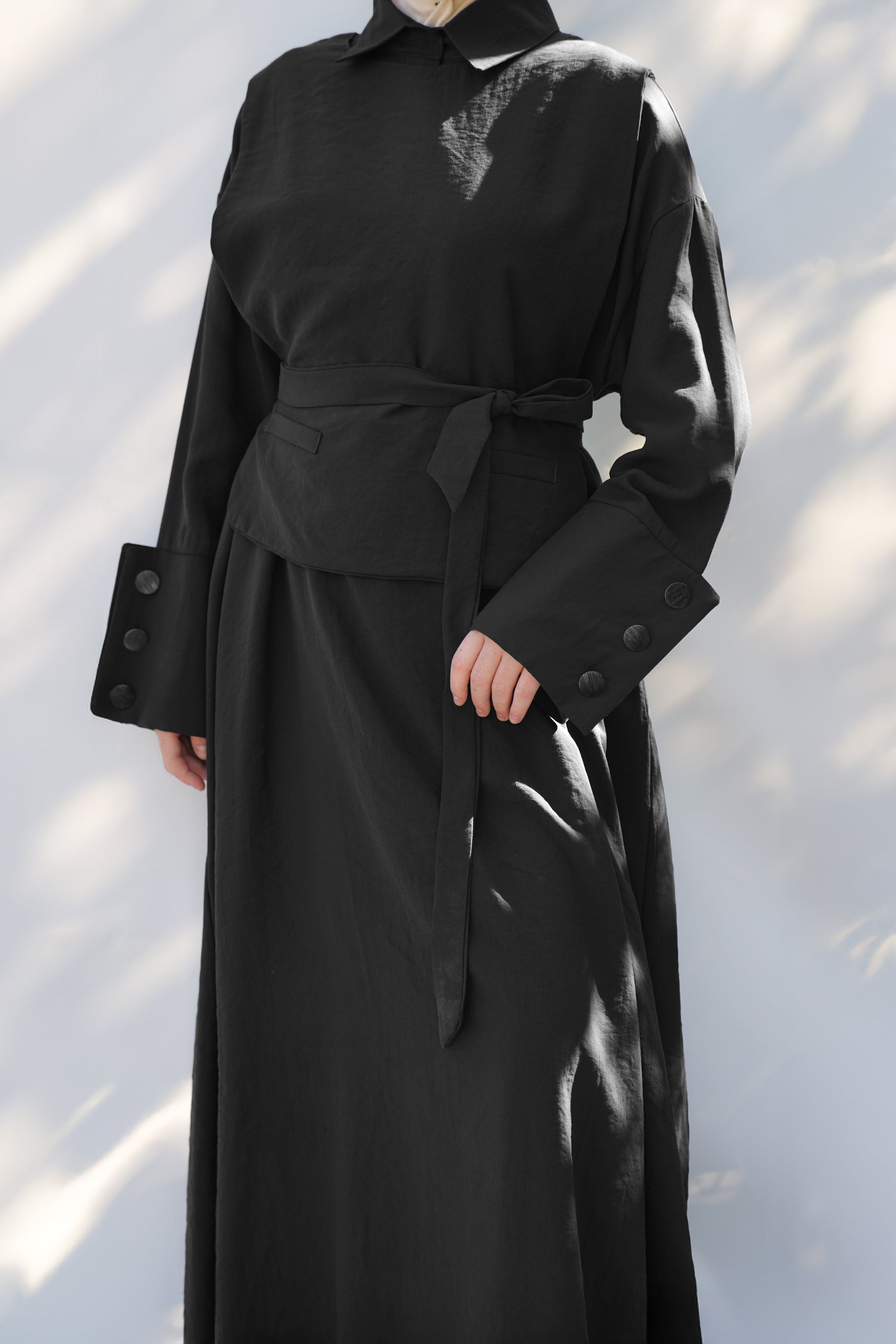 Tasarımın en büyük özelliği çok yönlü kullanımıdır. İster kendi başına şık bir tesettür elbise olarak, isterseniz önü açık bırakılarak uzun bir yelek tarzında kullanabilirsiniz. Bu esneklik, tek bir parçayla onlarca farklı kombin yaratmanıza olanak tanır.